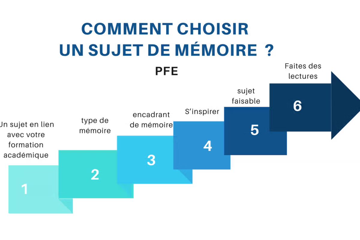 Comment choisir un sujet de mémoire (PFE) ou, plus précisément, la problématique de votre mémoire qui décrit le problème que vous allez résoudre dans votre développement. Elle se définit et se construit à travers une question principale et à travers une ou plusieurs autres secondaires.