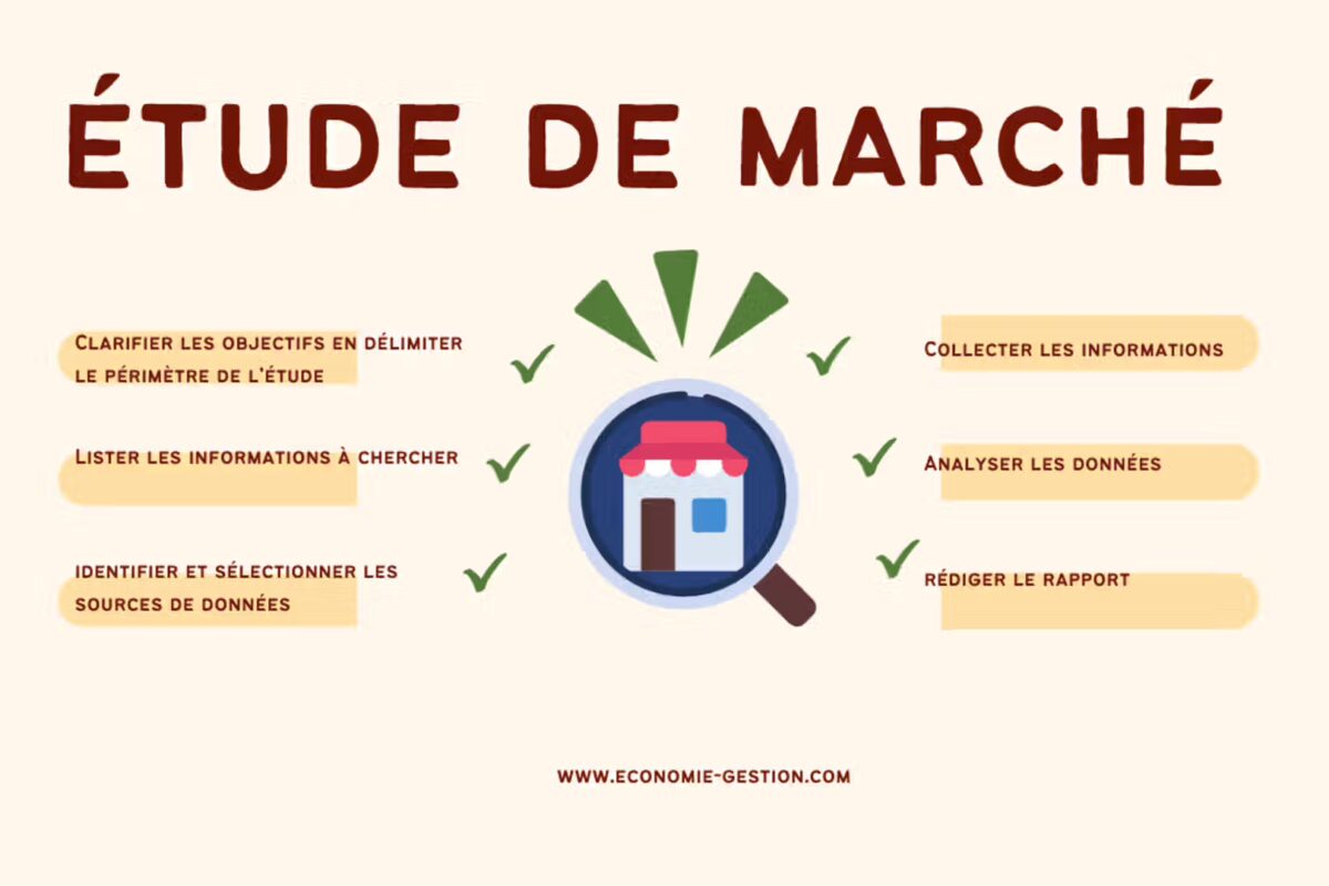 Une étude de marché consiste à collecter et à analyser des informations pour caractériser un marché. Le but est de décrire de manière précise et exhaustive toutes les caractéristiques d'un marché spécifique et de comprendre comment il fonctionne.