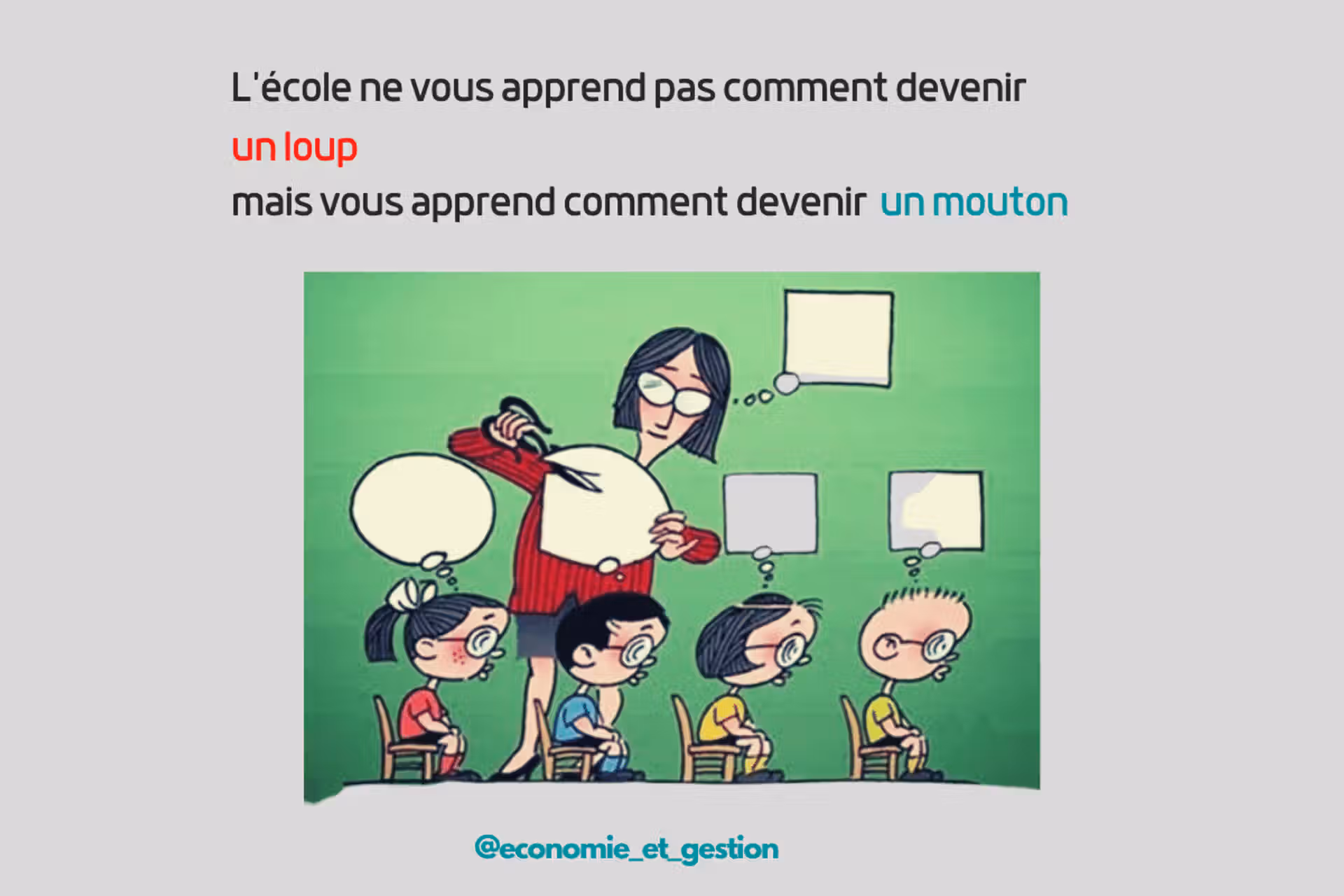 L’école actuelle forme tout simplement les futurs employés de la société. Je le répète encore, il n’y a aucun mal à être employé. Le seul problème, c’est qu’un employé est appelé à survivre aussi longtemps qu’il ne développe pas son intelligence financière. Alors, que les gouvernements ne soient pas hypocrites avec de beaux programmes de lutte contre la pauvreté quand il paraît assez flagrant, pourtant que le système éducatif contribue à en créer des millions et des millions chaque année.