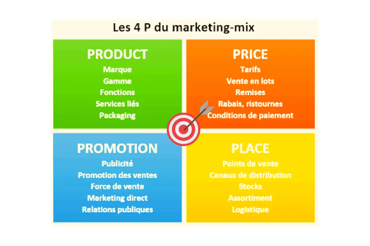 Le marketing mix est la déclinaison pratique du positionnement adopté par l’entreprise. Exactement, ce sont les 4 moyens d'actions (les 4p) pour attirer plus de clients : le produit, le prix, la distribution, la communication.