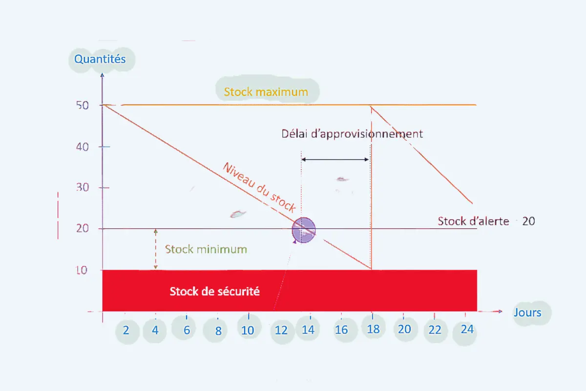 Ce stock correspond à la quantité minimum qu'il faut conserver pour éviter d'être en rupture de stock s'il se produit un événement imprévu. Il viendra en complément du stock minimum.