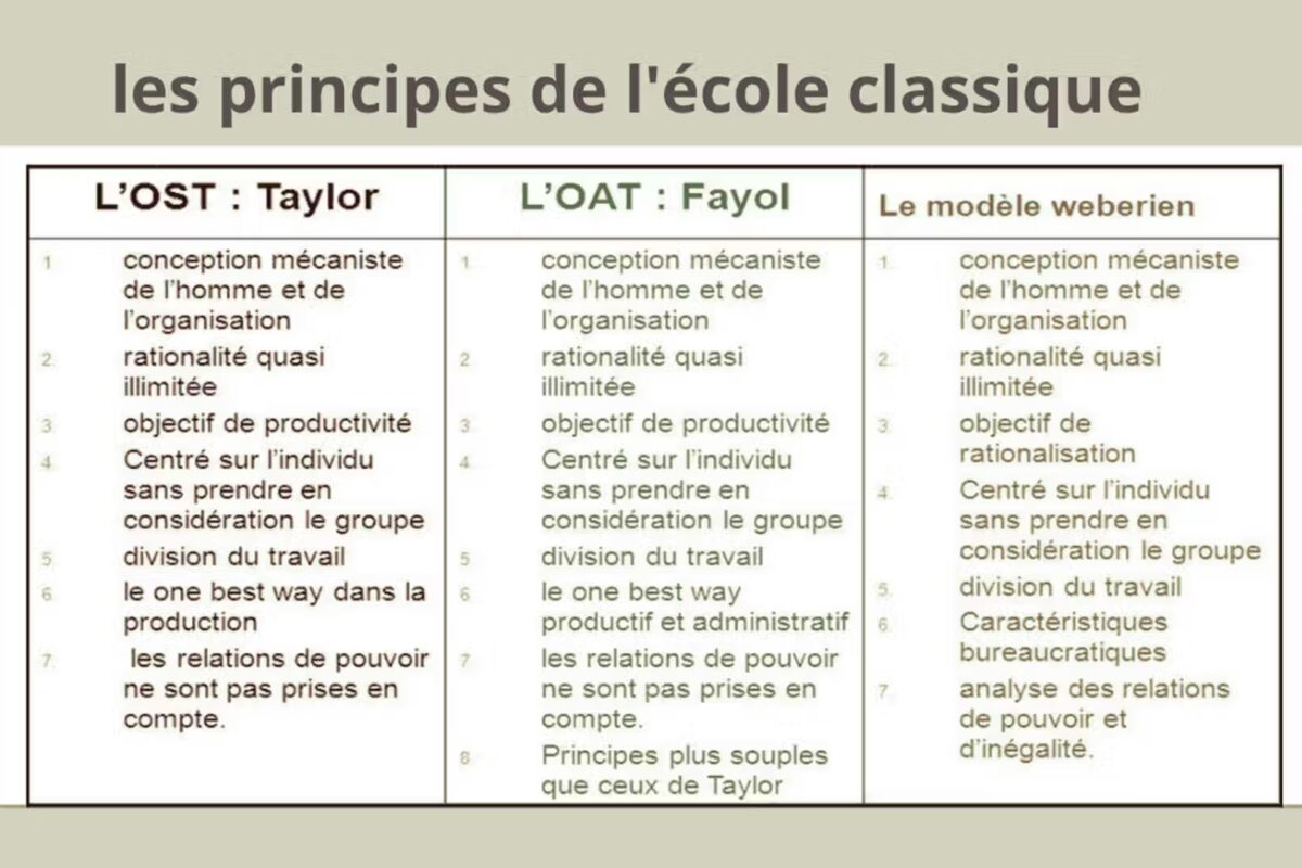 Les fondements du management moderne reposent sur les travaux d’un groupe d’auteurs et de praticiens ayant formulé des principes rationnels et logiques visant à améliorer la performance des entreprises. Ces contributions ont donné naissance à l’école classique du management, qui se divise en trois grands courants :