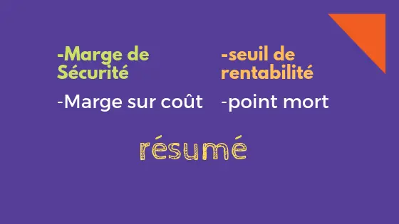 seuil de rentabilité point mort cours résumé contient les principaux formules de calculs. Ainsi que les différents définitions liés à la notion de rentabilité.